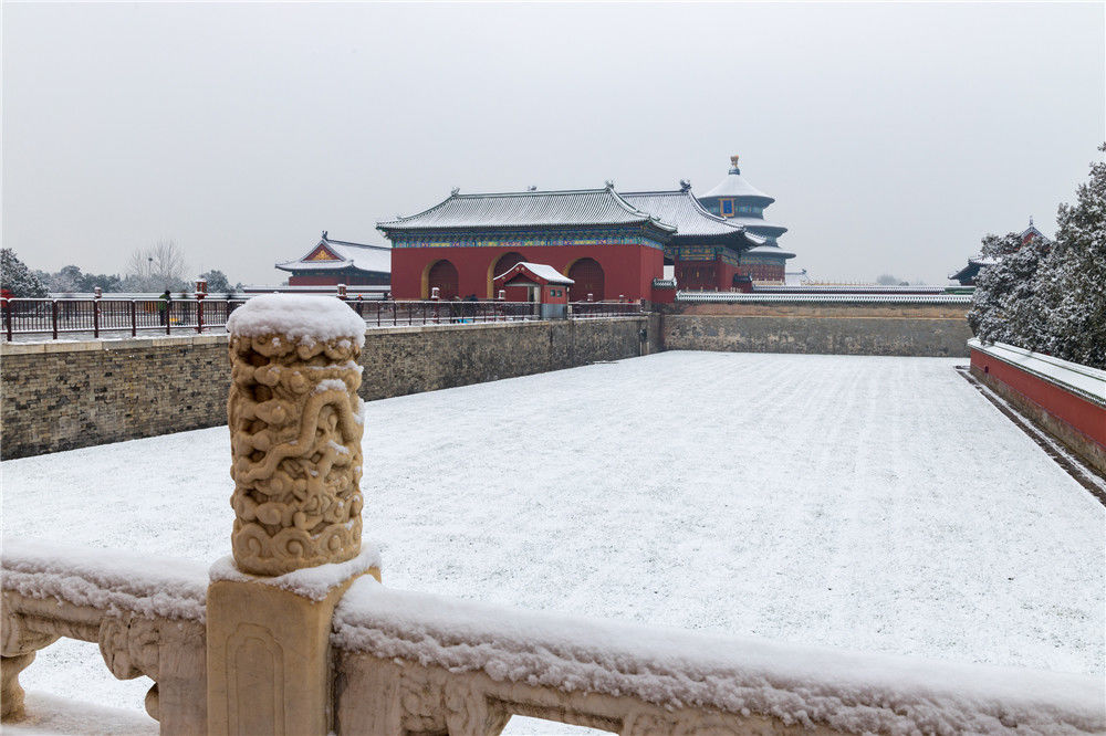 2019年11月30日,北京,初雪過(guò)后,天壇公園銀裝素裹,白雪古建相互映襯,景色迷人。劉高攀/視覺(jué)中國(guó)