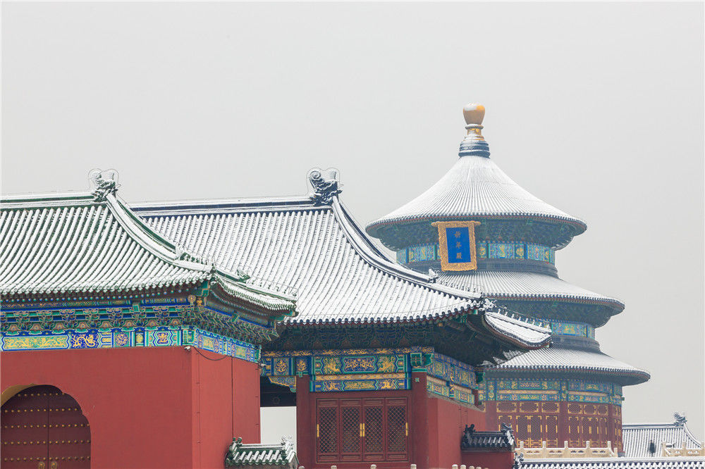 2019年11月30日,北京,初雪過(guò)后,天壇公園銀裝素裹,白雪古建相互映襯,景色迷人。劉高攀/視覺中國(guó)