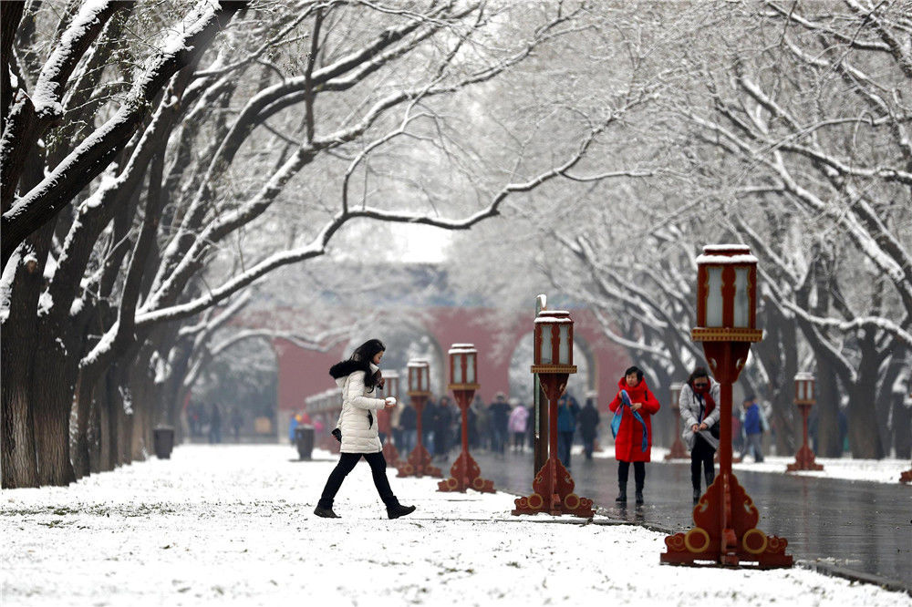 2019年11月30日,民眾在北京天壇公園內(nèi)賞雪。29日,北京迎來2019年冬季初雪。富田(攝影部)/中新社/視覺中國