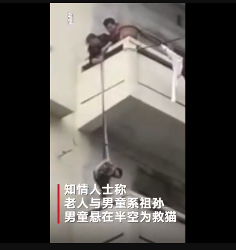 險(xiǎn)!老太用繩子綁孫子從5樓吊至3樓救貓 網(wǎng)友:孫子是買貓送的?