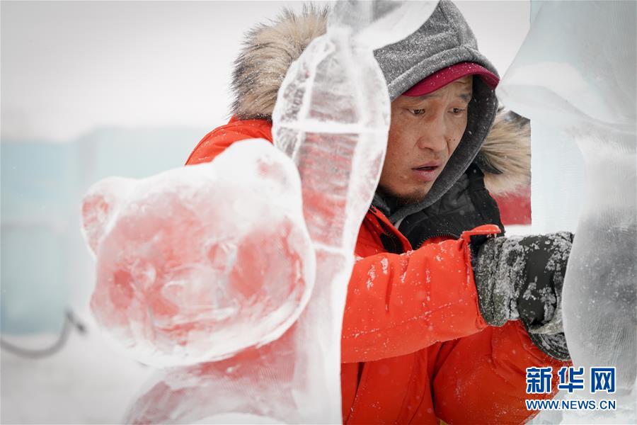 1月7日,參賽者在進行冰雕創(chuàng)作。新華社記者王松攝