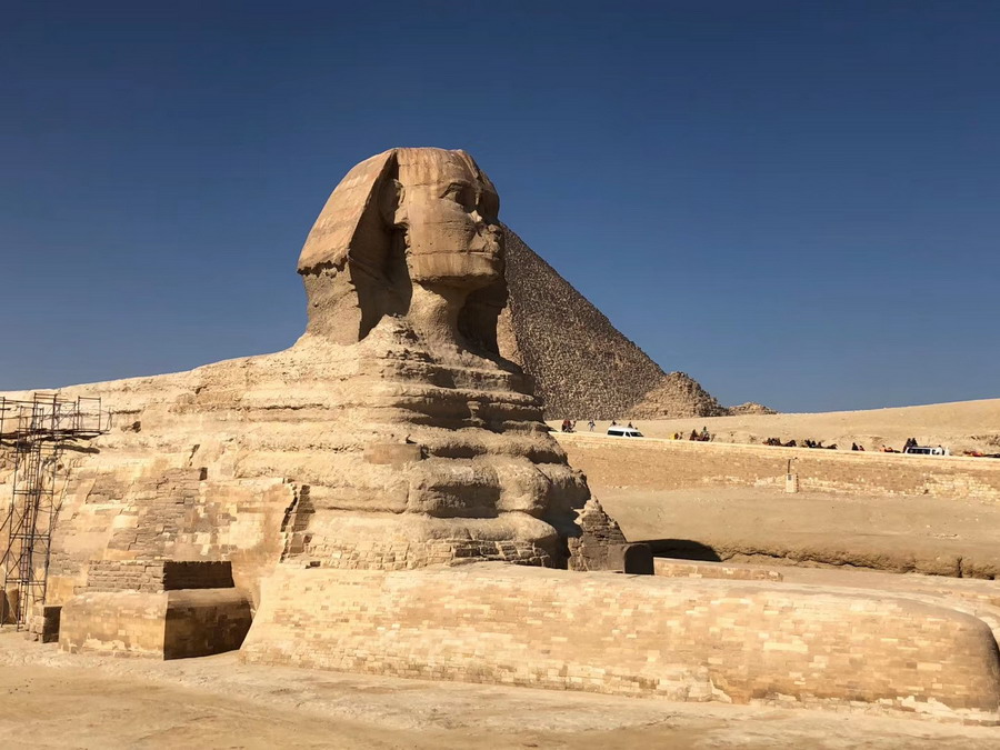獅身人面像位于埃及吉薩的金字塔墓區(qū),頭像部分一說是古埃及法老哈夫拉按自己的肖像建造。孫衛(wèi)南攝