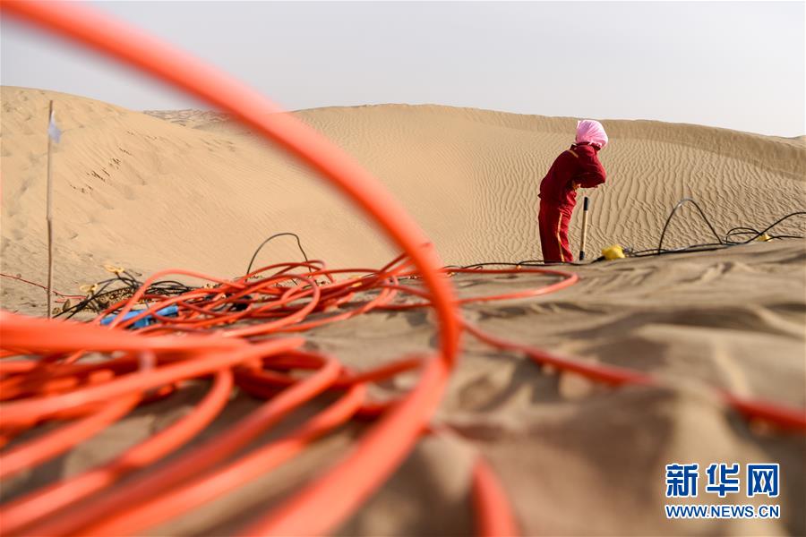 1月14日,放線工張進秀在放完一組檢波器后直起腰休息。地球物理勘探是油氣開發(fā)的第一步,相當于給地球做CT。物探工人按照嚴格的測線部署,在相應(yīng)位置鉆井,然后實施地震,采集地震波數(shù)據(jù)??蒲腥藛T通過數(shù)據(jù)組成的“CT片”,就能夠清晰地“看”到地下的地質(zhì)結(jié)構(gòu),判斷哪里埋藏有石油或者天然氣。2019年10月,東方地球物理勘探有限責(zé)任公司塔里木物探處2113隊進入新疆塔克拉瑪干沙漠腹地,開始中古14-21、塔中2兩個區(qū)塊的三維地震勘探。近2000名物探工人將在1000平方公里的范圍內(nèi)一直工作到2020年4月,這也意味著他們將在塔克拉瑪干沙漠腹地連續(xù)度過第14個除夕夜。蘊藏著豐富石油天然氣資源的新疆塔克拉瑪干沙漠有“死亡之?!敝Q,氣候干燥,年降水量在50毫米以下,冬季地表最低溫度超過零下30攝氏度,是世界油氣勘探難度最大的地區(qū)之一。為避開風(fēng)季,物探工人每年9、10月份進入沙漠,一直工作到來年4月,夜以繼日與黃沙、嚴寒為伴,用辛勤的汗水,為祖國找油找氣。新華社記者丁磊攝
