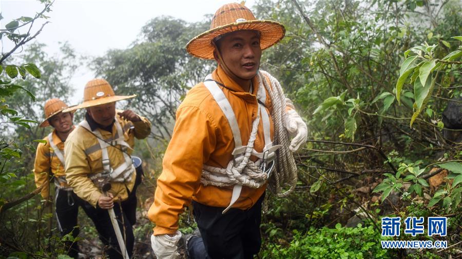 1月14日,百色工務段白水河橋隧工區(qū)班組成員在搜山掃石。在中國鐵路南寧局集團公司百色工務段白水河橋隧工區(qū),有一個由14名工人組成的班組。他們常年像“爬山虎”一樣行走攀爬在地形險峻、云霧繚繞的高山上,負責南昆鐵路轄區(qū)路段的搜山掃石工作,清除一切可能危害鐵路行車安全的因素,保障旅客出行安全。新華社記者張愛林攝