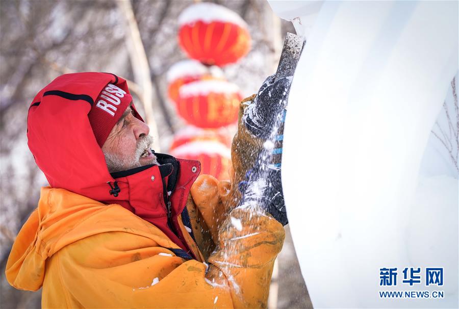 1月13日,參賽選手在哈爾濱太陽(yáng)島雪博會(huì)園區(qū)創(chuàng)作雪雕。新華社記者王松攝