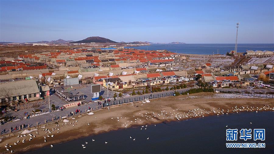 2020年的第一場(chǎng)雪,飄落在百年海草房上,海灣里游弋的大天鵝,引頸鳴唱。煙墩角,這個(gè)山東省榮成市海濱的小漁村,因冬雪和天鵝的到來而顯得更加熱鬧。