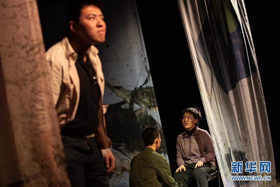 1月14日,演員在繁星戲劇村劇場(chǎng)表演話劇《心尖上的綠孔雀》。新華社記者 吳壯 攝