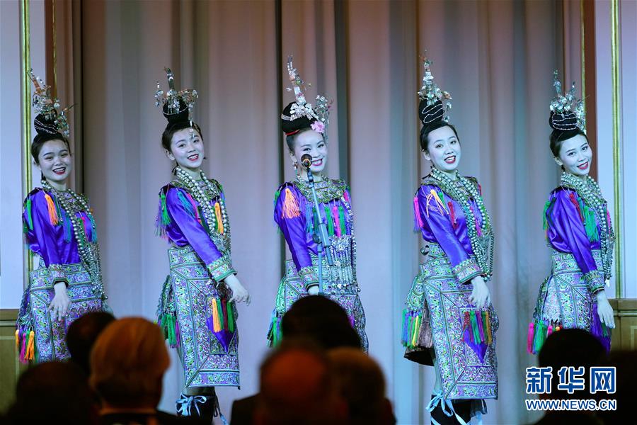 1月15日,在德國(guó)柏林,貴州省歌舞劇院藝術(shù)團(tuán)的演員在晚會(huì)上表演。 15日晚,2020年“歡樂(lè)春節(jié)”新春文藝晚會(huì)在德國(guó)柏林的紅色市政廳上演,中德兩國(guó)各界代表觀看演出,共慶中國(guó)農(nóng)歷新年。 新華社記者 王勍 攝