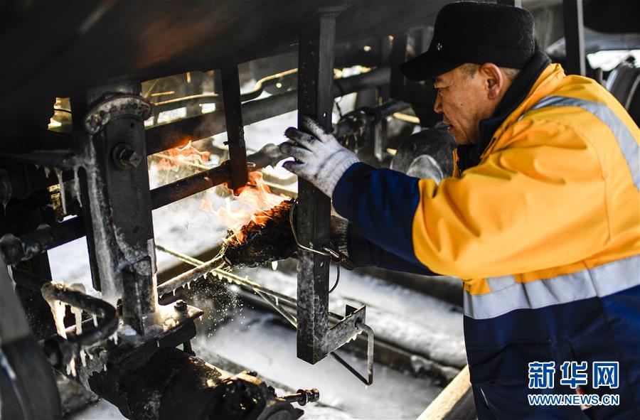 因為冬季溫度過低,送水員黃衛(wèi)東在蓄水前需要提前加熱閥門(1月17日攝)。新華社記者 許暢 攝