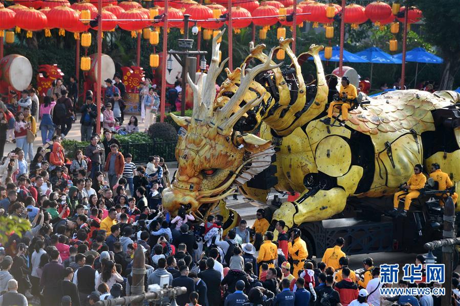 1月18日,大型機械裝置藝術品“龍馬精神”在珠海長隆海洋王國巡游展示。新華社記者 劉大偉 攝