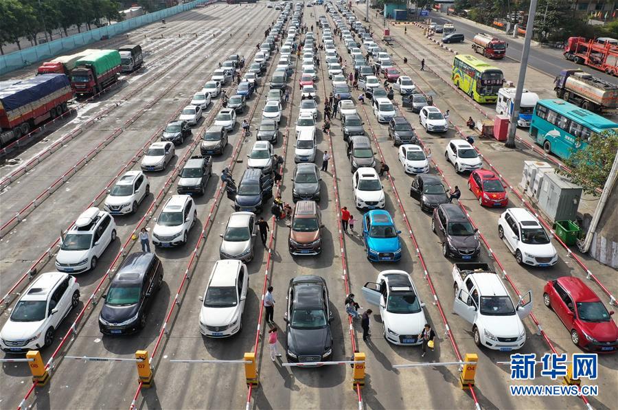 1月19日,車輛在海口秀英港輪渡碼頭等待登船(無人機(jī)照片)。 當(dāng)日是春運(yùn)第10天,瓊州海峽進(jìn)入春運(yùn)進(jìn)出港高峰。據(jù)海南港航控股有限公司數(shù)據(jù),截至18日,海口市兩港口春運(yùn)累計進(jìn)出港旅客54.89萬人次,進(jìn)出港車輛13.32萬輛次。18日單日進(jìn)出港旅客9.75萬人次,同比增長43.9%,進(jìn)出港車輛2.3萬輛車次,同比增長45.5%。 新華社記者 郭程 攝