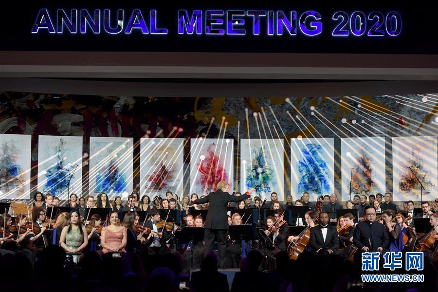 1月20日,在瑞士達(dá)沃斯,藝術(shù)家在世界經(jīng)濟(jì)論壇2020年年會開幕音樂會上表演。 新華社記者 郭晨 攝