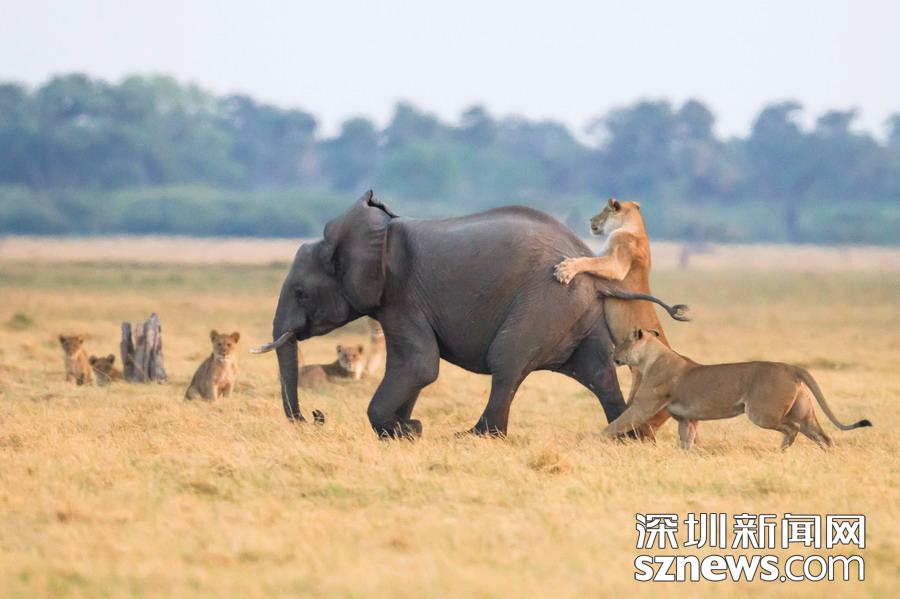 小象遭獅子獵食,象群趕到霸氣護(hù)崽。