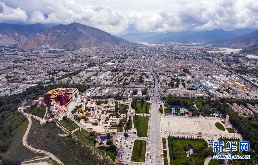鳥瞰拉薩古城(8月10日無人機拍攝)。新華社記者李鑫攝