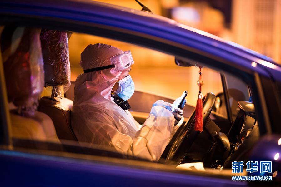 2月29日凌晨,王震在車內(nèi)查看出車信息。新華社記者 肖藝九 攝