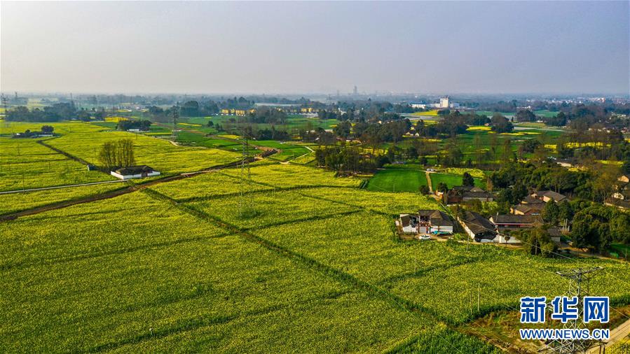 2月24日在四川省大邑縣安仁鎮(zhèn)永興村拍攝的油菜花田(無人機(jī)照片)。新華社記者王曦攝