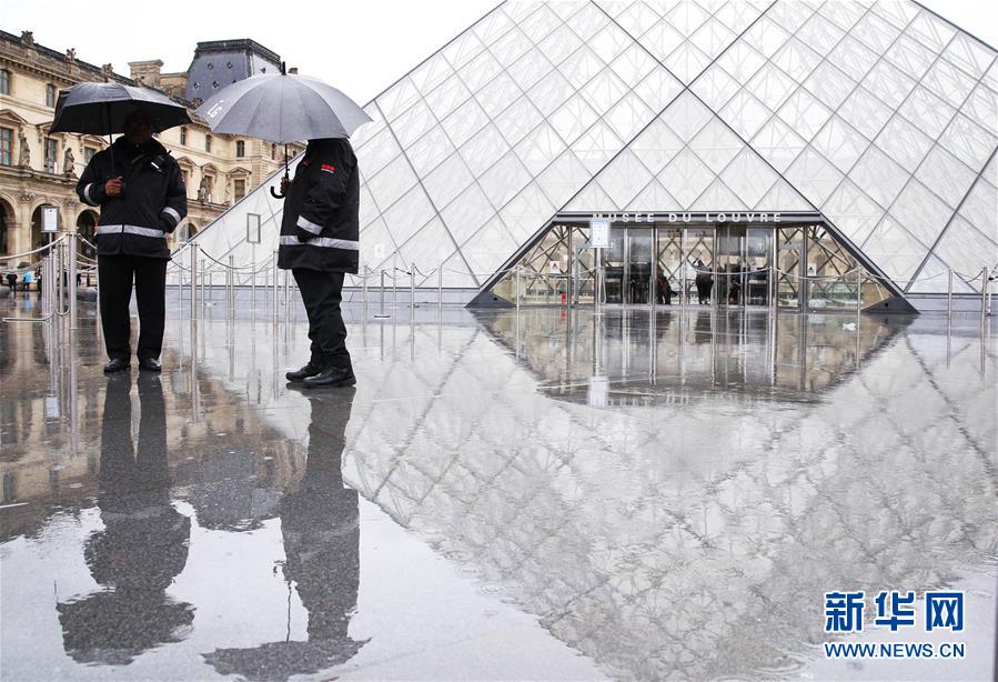 3月2日,在法國(guó)巴黎,游客撐傘走過(guò)盧浮宮的玻璃金字塔。新華社記者 高靜 攝