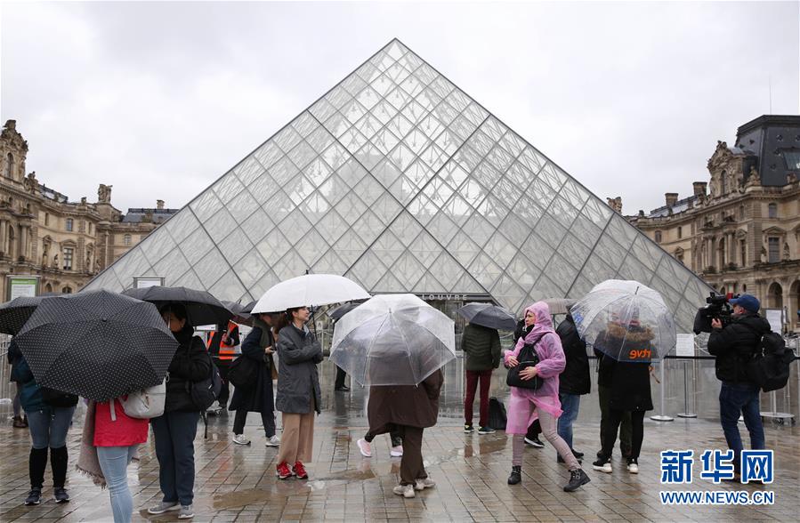 3月2日,在法國巴黎,人們?cè)诒R浮宮外了解開館信息。新華社記者 高靜 攝
