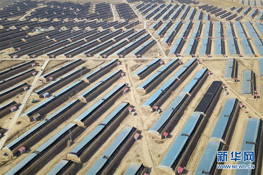 這是3月4日在靖遠縣北灣鎮(zhèn)拍攝的富坪村日光溫室基地(無人機照片)。新華社記者 范培珅 攝