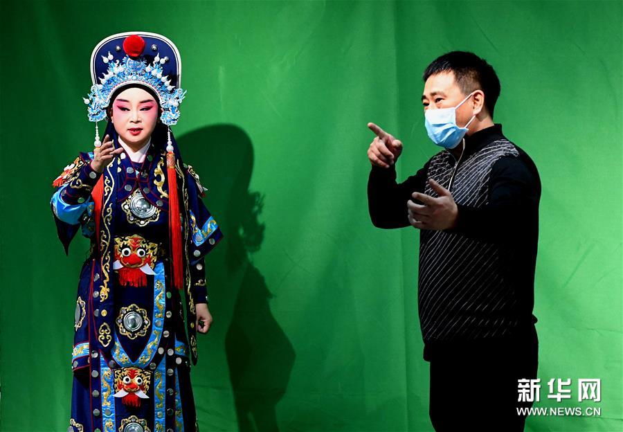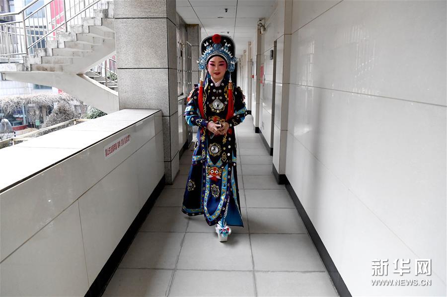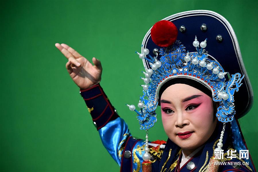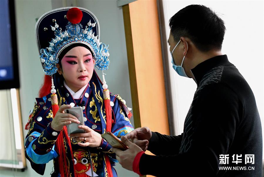 3月3日,李金玲在鄭州文化館通過(guò)直播的形式進(jìn)行帶妝表演豫劇《花木蘭》選段。李金玲是鄭州工程技術(shù)學(xué)院音樂(lè)舞蹈學(xué)院的教授,也是豫劇常派弟子。14歲開(kāi)始學(xué)習(xí)豫劇的她師從豫劇大師常香玉的次女陳小香。多年來(lái),除了本職工作教學(xué)外,她還作為文化志愿者,到各地義務(wù)表演、授課,致力于豫劇的傳承與發(fā)展。疫情防控期間,鄭州文化館展開(kāi)線(xiàn)上文藝戰(zhàn)“疫”,開(kāi)通網(wǎng)絡(luò)直播平臺(tái),李金玲也作為志愿者走進(jìn)“直播間”,進(jìn)行帶妝表演和教學(xué),精彩的“云”上表演吸引了不少戲迷的關(guān)注。“在這個(gè)特殊時(shí)期,通過(guò)直播的形式為大家表演,希望可以讓更多的人喜歡和了解豫劇,感受它獨(dú)特的魅力?!崩罱鹆嵴f(shuō)。新華社記者 李安 攝