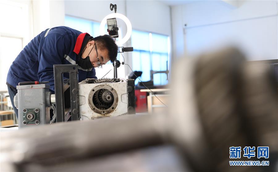 3月4日,職教城內(nèi)的鞍山市交通運(yùn)輸學(xué)校的高峰老師為學(xué)生進(jìn)行變速器檢修實(shí)訓(xùn)網(wǎng)絡(luò)授課。遼寧省鞍山市職教城內(nèi)的各類職業(yè)教育學(xué)校從3月2日恢復(fù)網(wǎng)絡(luò)授課以來,教師們?cè)O(shè)置了豐富多彩的課程,提高1萬余名學(xué)生線上學(xué)習(xí)的積極性。新華社記者姚劍鋒 攝
