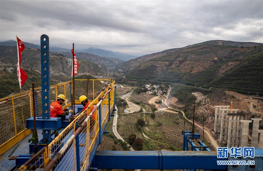 3月5日,工人在中老鐵路南溪河特大橋上施工。近期,中老鐵路玉溪至磨憨段有序復(fù)工復(fù)產(chǎn),由中鐵四局承建的中老鐵路全線重點(diǎn)控制性工程——元江特大橋、南溪河特大橋正在加緊施工建設(shè)。新華社記者 江文耀 攝
