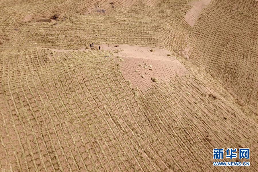 3月5日,在古浪縣北部沙區(qū)旱麻崗治沙點(diǎn),群眾扎草方格壓沙(無人機(jī)照片)。初春時(shí)節(jié),在騰格里沙漠南緣的甘肅省武威市古浪縣,當(dāng)?shù)馗刹柯毠ぜ鞍瞬缴沉謭鲋紊橙斯餐诳h城北部沙區(qū)旱麻崗治沙點(diǎn)開展春季治沙勞動(dòng)。新華社記者 范培珅 攝