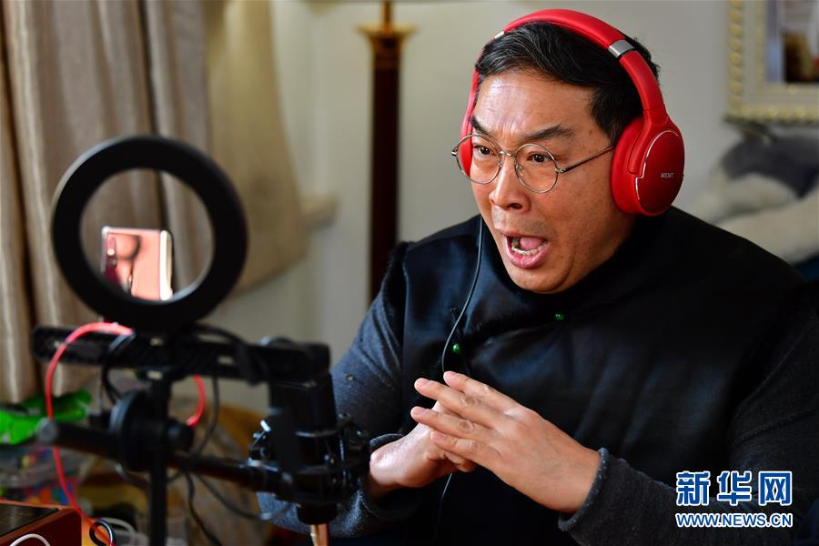 武凌云在直播中演唱晉劇片段(3月5日攝)。 新華社記者 曹陽(yáng) 攝