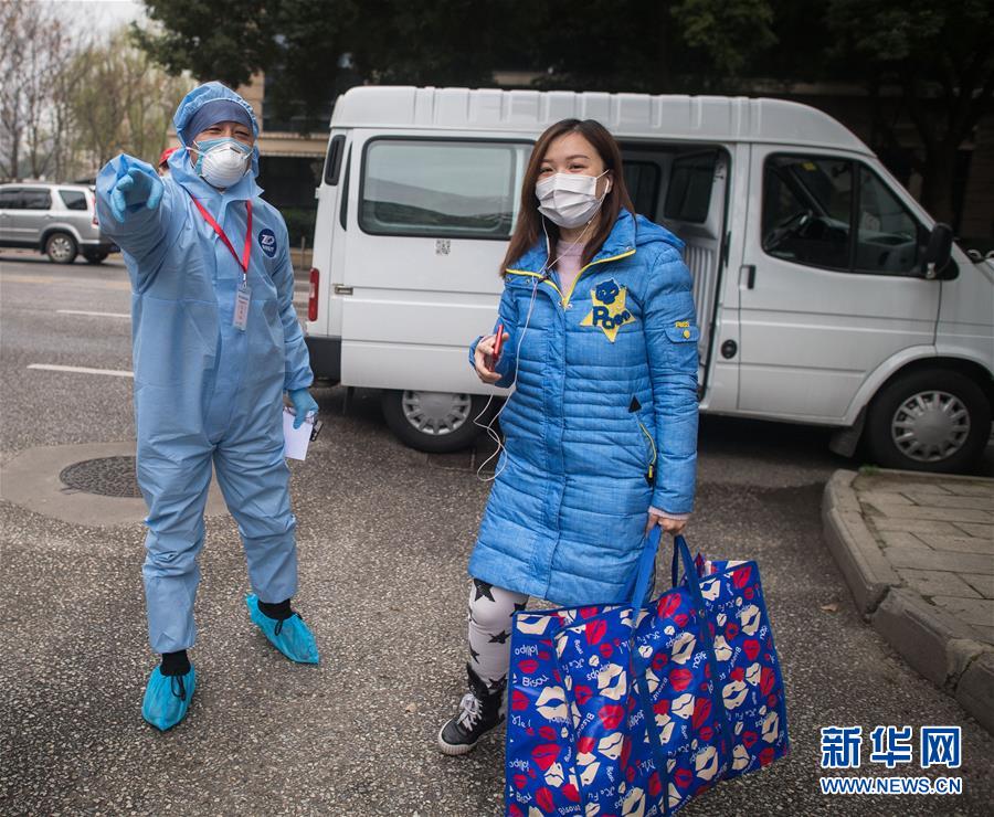 3月12日,黎婧(右)到達(dá)小區(qū)后激動(dòng)不已。 3月12日,插畫師黎婧和84位病友離開自己居住的武漢軟件工程職業(yè)學(xué)院康復(fù)驛站,回到自己家中。他們都是治愈出院的新冠病毒肺炎患者,已經(jīng)在武漢軟件工程職業(yè)學(xué)院康復(fù)驛站進(jìn)行了14天醫(yī)學(xué)觀察,達(dá)到醫(yī)學(xué)標(biāo)準(zhǔn),成功解除隔離。他們由專車運(yùn)送至所屬社區(qū)附近的集散點(diǎn)后,在社區(qū)工作人員的陪同下回家。 新華社記者 肖藝九 攝