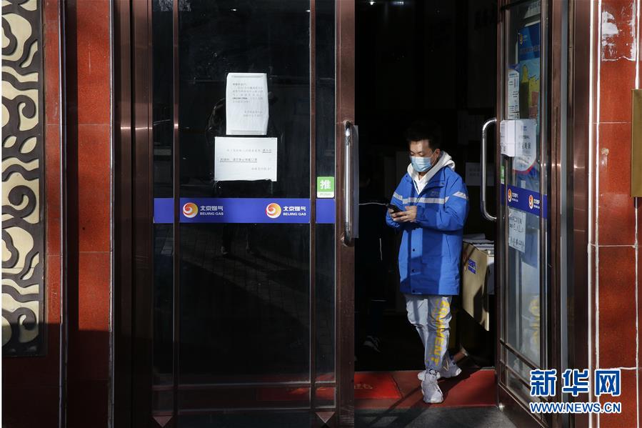 3月12日,李杰(右)在一個(gè)投遞點(diǎn)向傳達(dá)室工作人員詢問(wèn)收件人的信息。新華社記者張玉薇攝