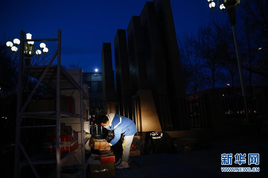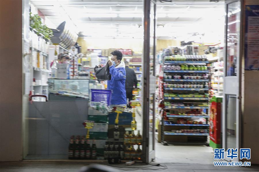 3月12日,李杰天黑之后返回途中來(lái)到一家便利店取件。新華社記者張玉薇攝