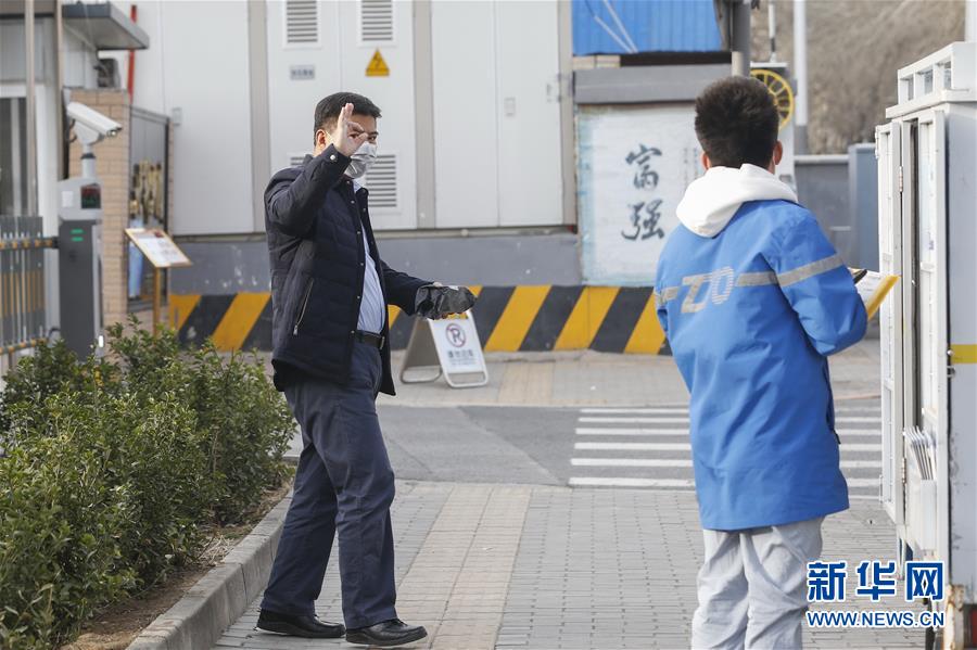 3月12日,李杰在中通快遞北京廠洼路網(wǎng)點(diǎn)上崗前檢測(cè)體溫。新華社記者張玉薇攝