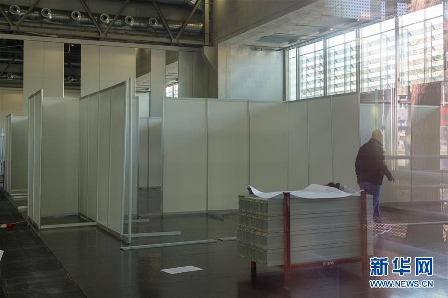 3月14日,在即將改造成為方艙醫(yī)院的維也納展覽館內(nèi),工作人員正在加緊施工。近日,由于奧地利新型冠狀病毒感染人數(shù)不斷增加,奧地利首都維也納正在將該市的一座大型展覽館——維也納展覽館改造成為一座臨時(shí)性的方艙醫(yī)院。據(jù)當(dāng)?shù)孛襟w介紹,該方艙醫(yī)院將在下周提供880張床位,用于收治輕度病癥患者。新華社記者郭晨攝