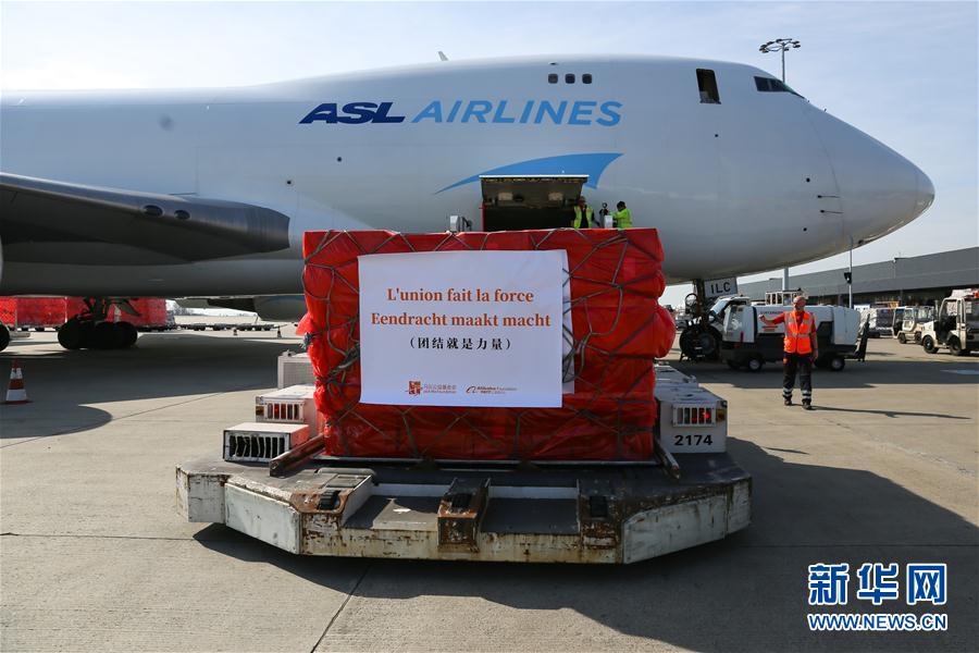來自中國的30萬只口罩當(dāng)?shù)貢r間16日中午運(yùn)抵比利時列日機(jī)場。 新華社記者 張鋮 攝