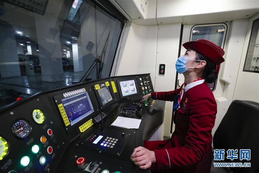 3月28日,武漢地鐵運營有限公司司機吳亞在常青車輛段檢查車輛情況。新華社記者沈伯韓攝