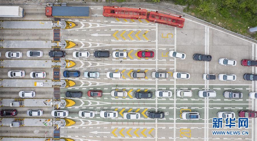 3月24日,在武漢西高速收費站交通卡點,返漢車輛排隊等候入城(無人機照片)。當日,湖北省新冠肺炎疫情防控指揮部發(fā)布通告說,湖北省除武漢市以外地區(qū),將于3月25日起解除離鄂通道管控,武漢市將于4月8日起解除離漢離鄂通道管控措施。隨著近日武漢部分企業(yè)逐漸復產(chǎn)復工,進入武漢的返城務工人員陸續(xù)增多,車輛在武漢西高速收費站交通卡點有序排隊返回武漢。工作人員對返城人員檢查體溫,并核查證明健康的“綠碼”和身份證后放行。新華社記者才揚攝