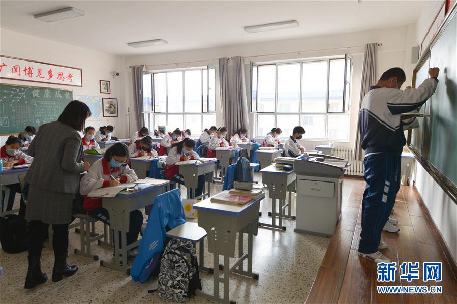 3月30日,呼和浩特市第六中學(xué)師生在教室內(nèi)上課。當(dāng)日,內(nèi)蒙古自治區(qū)全區(qū)高三和初三年級開學(xué)復(fù)課。新華社記者徐欽攝