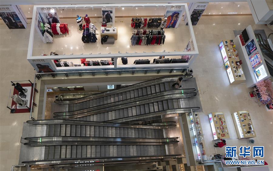 3月30日,在武商世貿(mào)廣場,一位顧客乘坐滾梯。當日,武漢市多家商場開門迎客。新華社記者費茂華攝