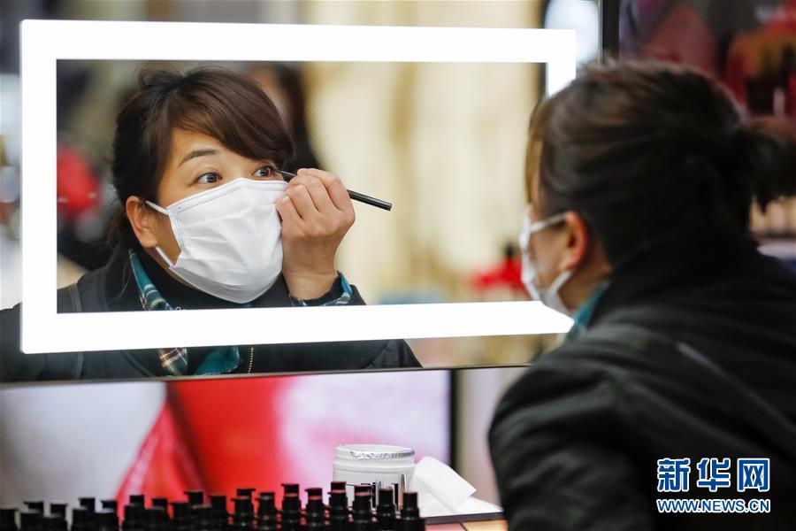 3月30日,在武漢市武商廣場,消費者在試用眉筆。當日,武漢市多家商場開門迎客。新華社記者沈伯韓攝