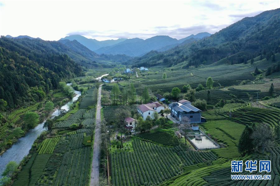 武夷山國(guó)家公園內(nèi)茶園青翠,即將進(jìn)入采摘期(4月1日攝,無(wú)人機(jī)照片)。 新華社記者 姜克紅 攝