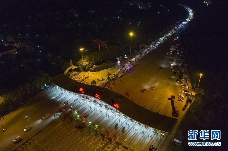 4月8日凌晨,車輛準備通過武漢西高速收費站。 新華社記者 沈伯韓 攝