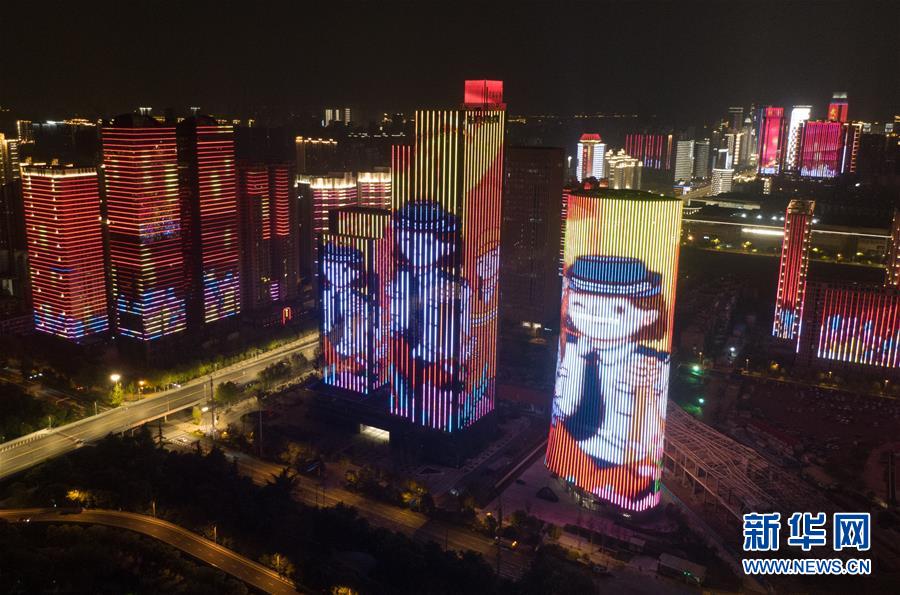 4月8日零時(shí)起,武漢市正式解除離漢離鄂通道管控措施,全市景觀照明開(kāi)啟(無(wú)人機(jī)拍攝)。新華社記者程敏攝
