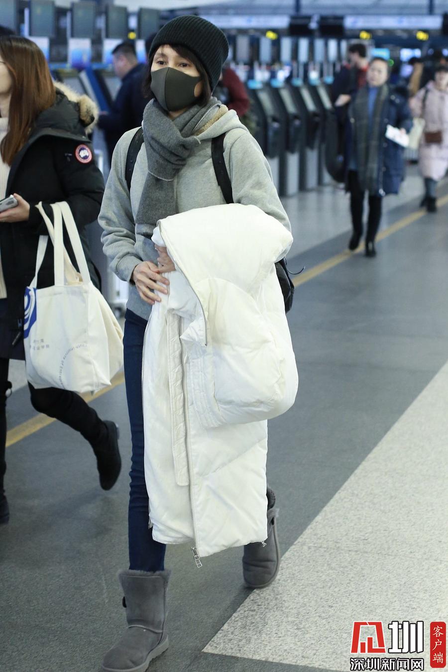 2019年1月5日,北京,袁泉現(xiàn)身機(jī)場(chǎng)。