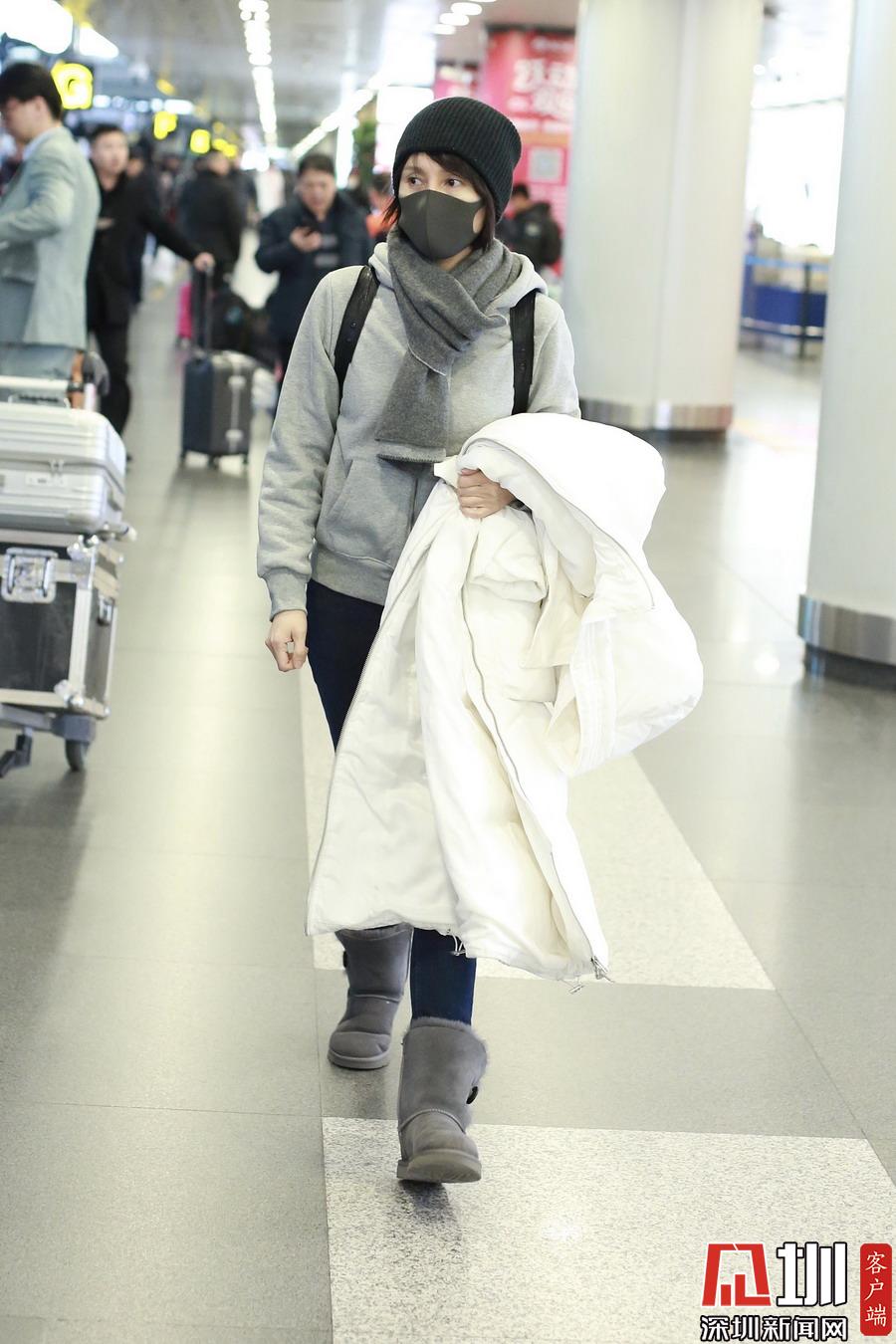 2019年1月5日,北京,袁泉現(xiàn)身機場。
