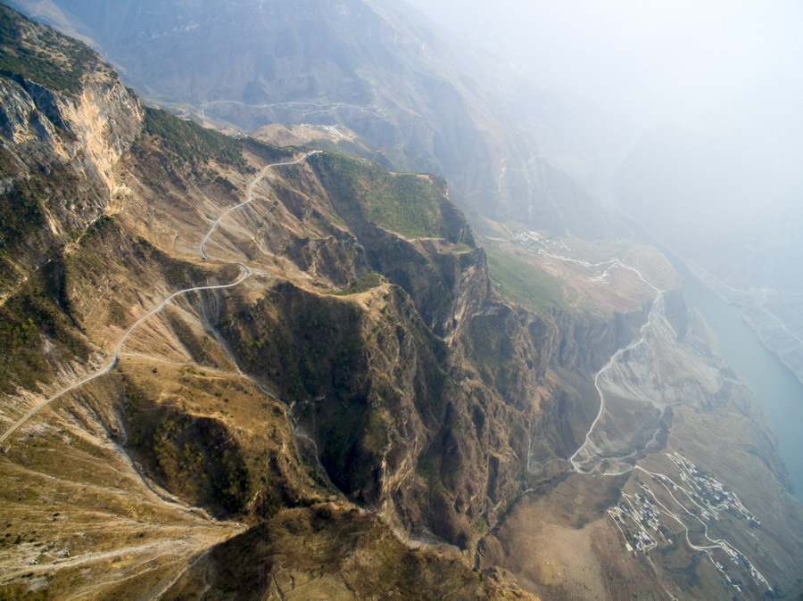 航拍云南山區(qū)“魔鬼公路” 在原地盤旋海拔下降1200米