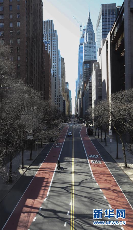 3月21日,在美國(guó)紐約,以往繁忙的街道上車輛寥寥。新華社記者王迎攝