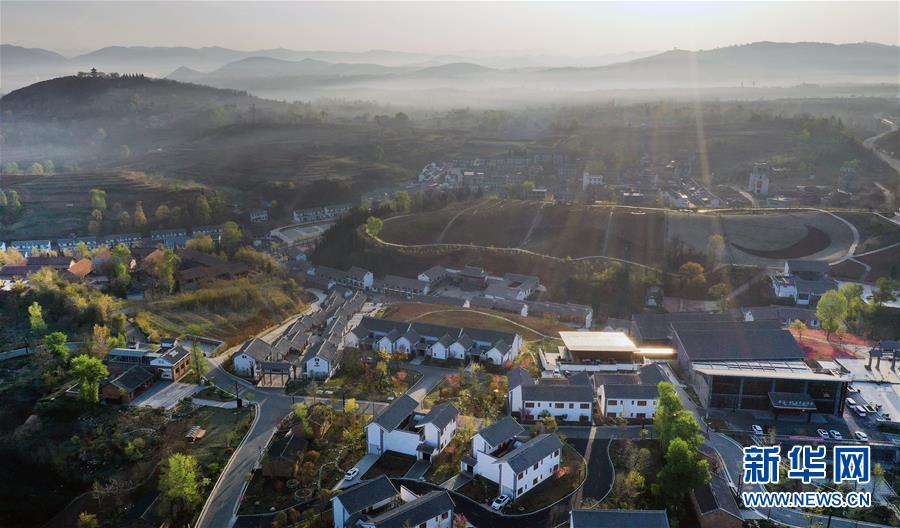 4月13日清晨時(shí)分拍攝的洛南縣城(無(wú)人機(jī)照片)。新華社記者陶明攝