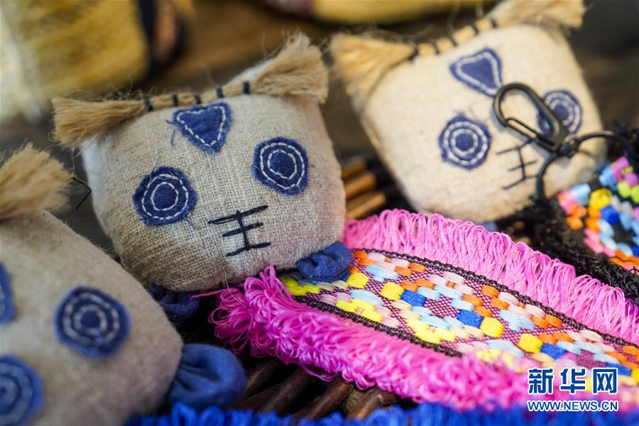 這是重慶石柱中益鄉(xiāng)巾幗扶貧工坊內(nèi)展示的當(dāng)?shù)貗D女制作的土家族風(fēng)情布老虎(4月8日攝)。近年來(lái),重慶市石柱土家族自治縣中益鄉(xiāng)在重慶市婦聯(lián)的幫助下,以當(dāng)?shù)胤沁z傳統(tǒng)技藝作為結(jié)合點(diǎn),把扶貧與扶志、扶智相結(jié)合,通過(guò)引進(jìn)外來(lái)文創(chuàng)企業(yè)對(duì)留守婦女、貧困及殘疾人群進(jìn)行刺繡培訓(xùn),設(shè)立巾幗扶貧工坊等多種形式,幫助當(dāng)?shù)卮迕駥?shí)現(xiàn)就業(yè)增收。據(jù)介紹,巾幗扶貧工坊運(yùn)行以來(lái),為當(dāng)?shù)仃懤m(xù)開發(fā)出土家族布老虎、手提袋、餐墊繡邊、創(chuàng)意相框等一系列文創(chuàng)產(chǎn)品,幫助參加巾幗扶貧工坊的留守婦女和貧困村民實(shí)現(xiàn)月均增收近千元。新華社記者劉潺攝
