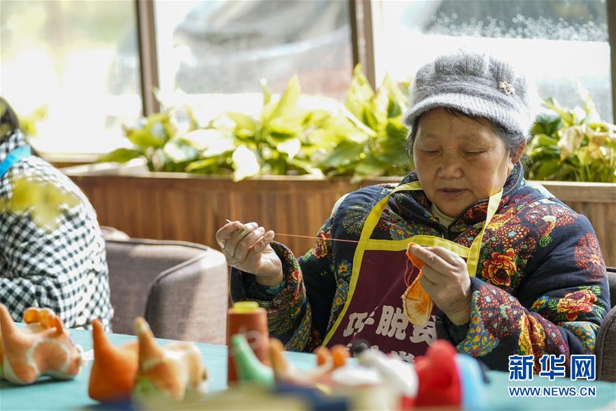 4月8日,在重慶石柱中益鄉(xiāng)巾幗扶貧工坊,當地婦女縫制土家族風情布老虎。近年來,重慶市石柱土家族自治縣中益鄉(xiāng)在重慶市婦聯的幫助下,以當地非遺傳統(tǒng)技藝作為結合點,把扶貧與扶志、扶智相結合,通過引進外來文創(chuàng)企業(yè)對留守婦女、貧困及殘疾人群進行刺繡培訓,設立巾幗扶貧工坊等多種形式,幫助當地村民實現就業(yè)增收。據介紹,巾幗扶貧工坊運行以來,為當地陸續(xù)開發(fā)出土家族布老虎、手提袋、餐墊繡邊、創(chuàng)意相框等一系列文創(chuàng)產品,幫助參加巾幗扶貧工坊的留守婦女和貧困村民實現月均增收近千元。新華社記者劉潺攝
