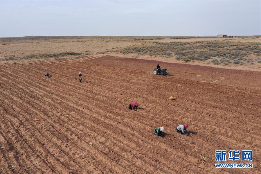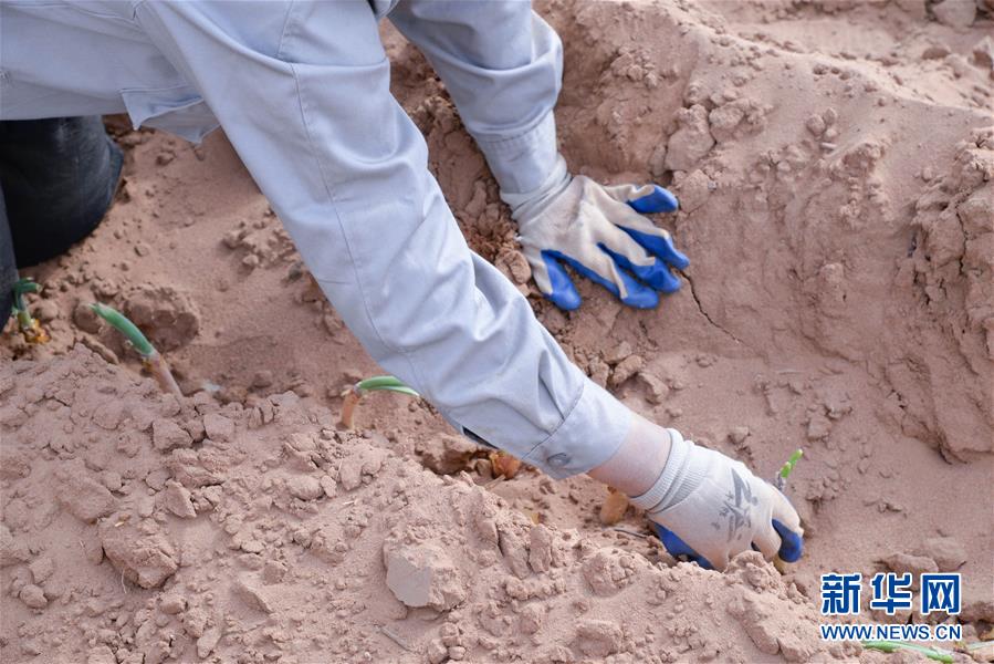 月15日,農(nóng)民在杭錦旗道勞呼都格嘎查的農(nóng)田里栽種紅蔥苗。春種時節(jié),在內(nèi)蒙古鄂爾多斯市杭錦旗道勞呼都格嘎查,農(nóng)民忙著播種紅蔥。在鄂爾多斯高原種植的紅蔥耐旱耐寒,具有較好的經(jīng)濟(jì)效益。新華社記者徐欽攝